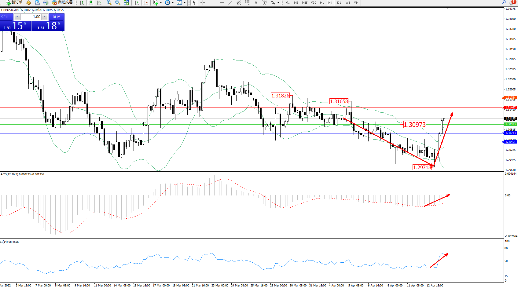 交易策略:1.30973上方看涨,目标1.31467、1.31754