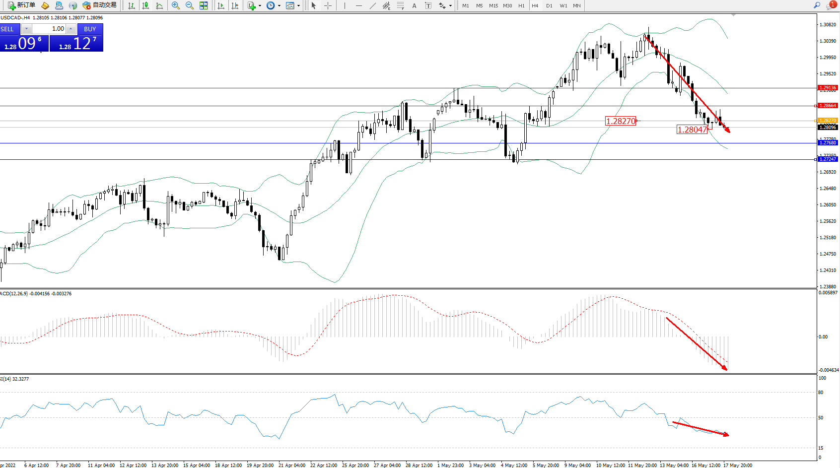 美元加元USDCAD——4小时K线图显示: