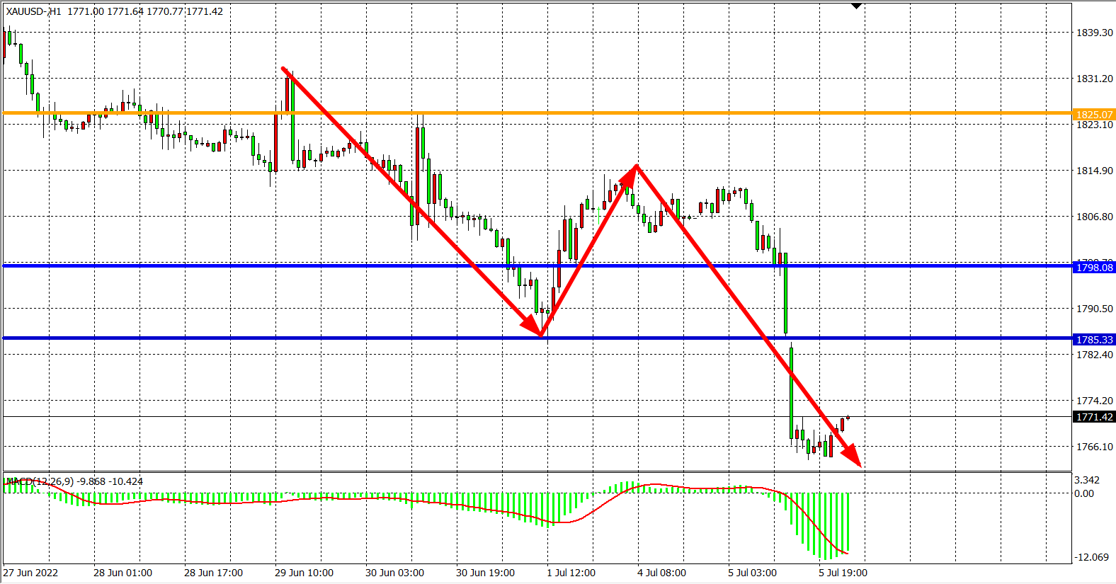 交易策略:在1785.00之下看跌,目标1760.00 1745.00
