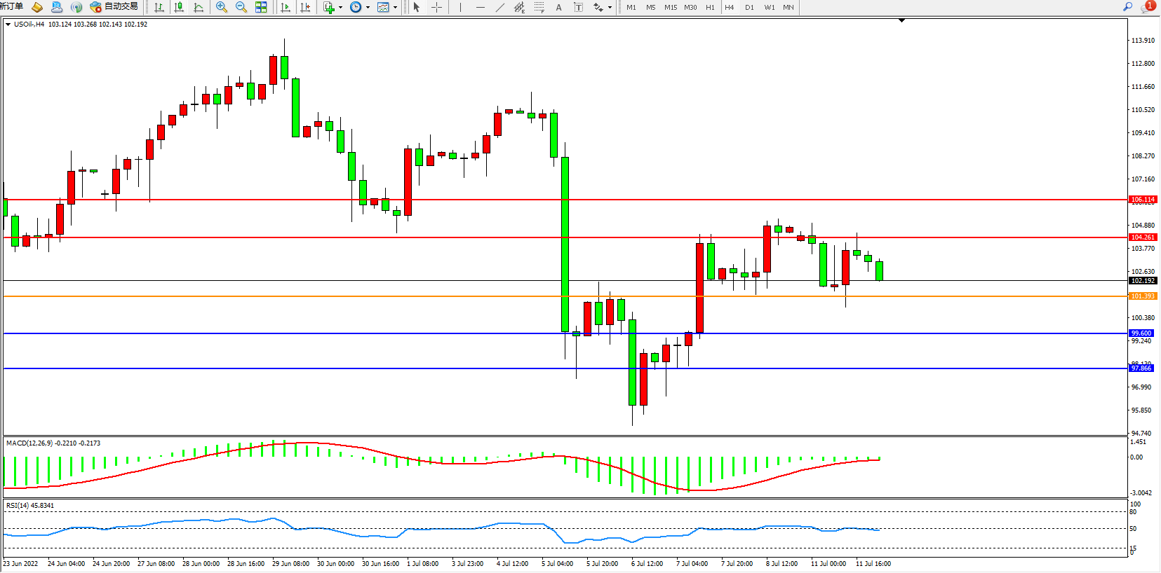 支撑位:99.600、97.866