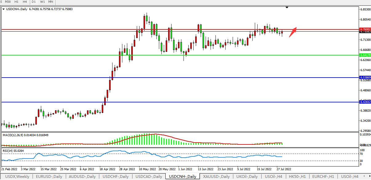美元人民币USDCNH 日线图: