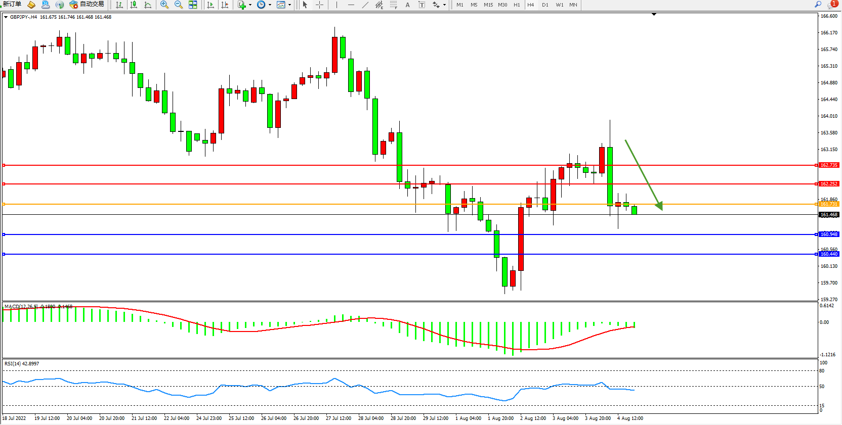 交易策略:161.731下方看跌,目标160.948、160.440
