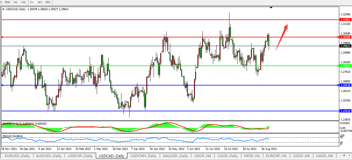 日线图看:短期汇价快速下挫,MACD运行于0轴上且量能0轴上开始放量,RSI快速下行,预计短期汇价大概率将在进一步回测整理。