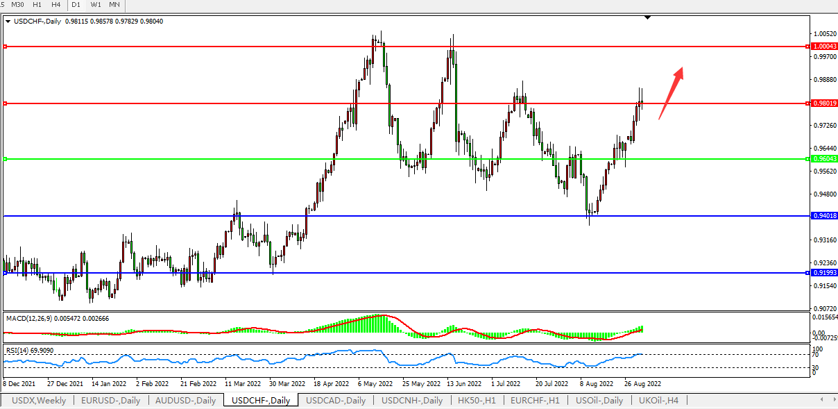 交易策略:0.9600上方看涨,目标0.9800,1.0000