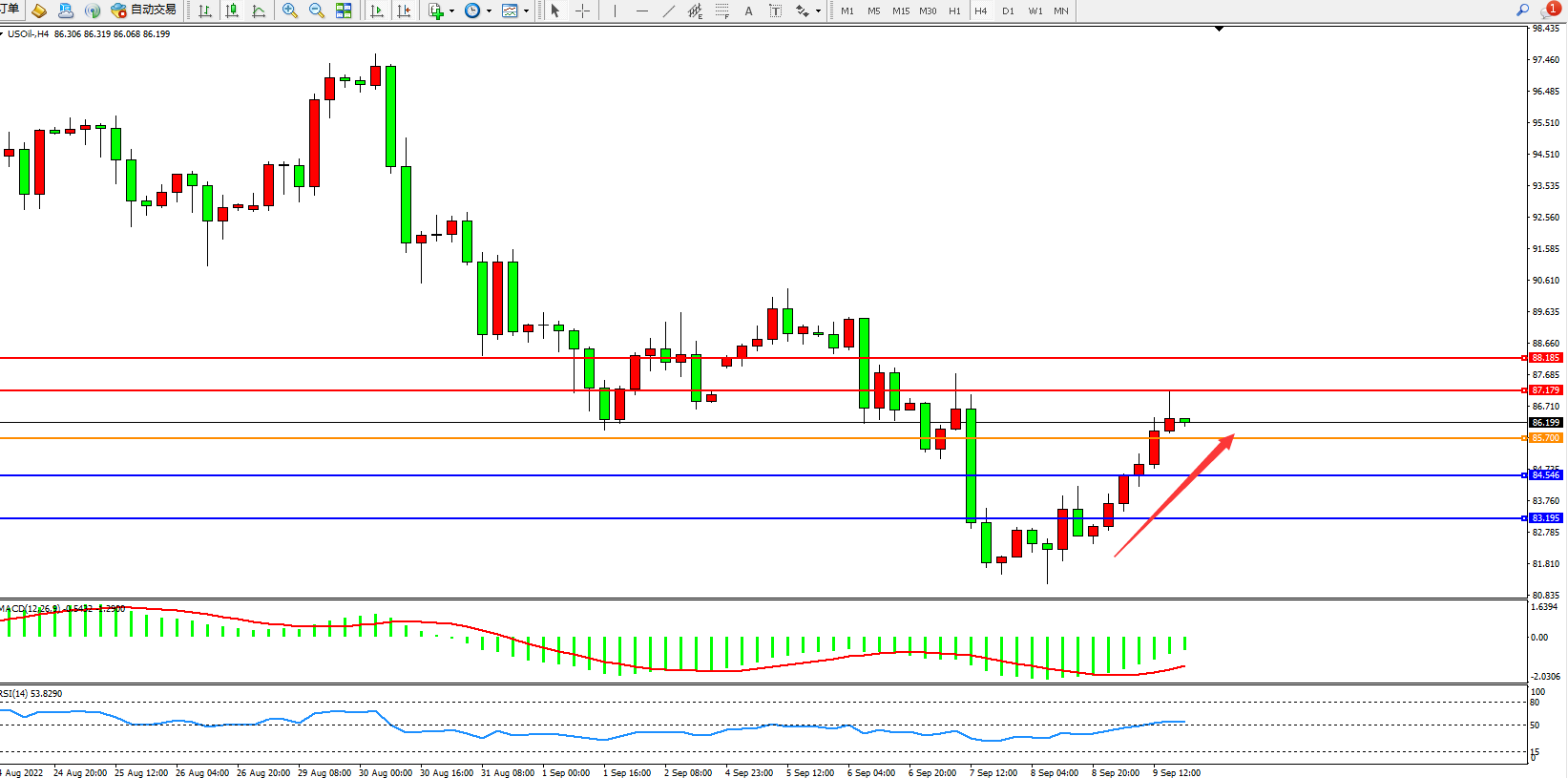 交易策略:85.700上方看涨,目标87.179、88.185