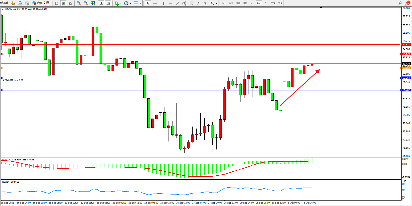 原油USOil——4小时K线图显示:
