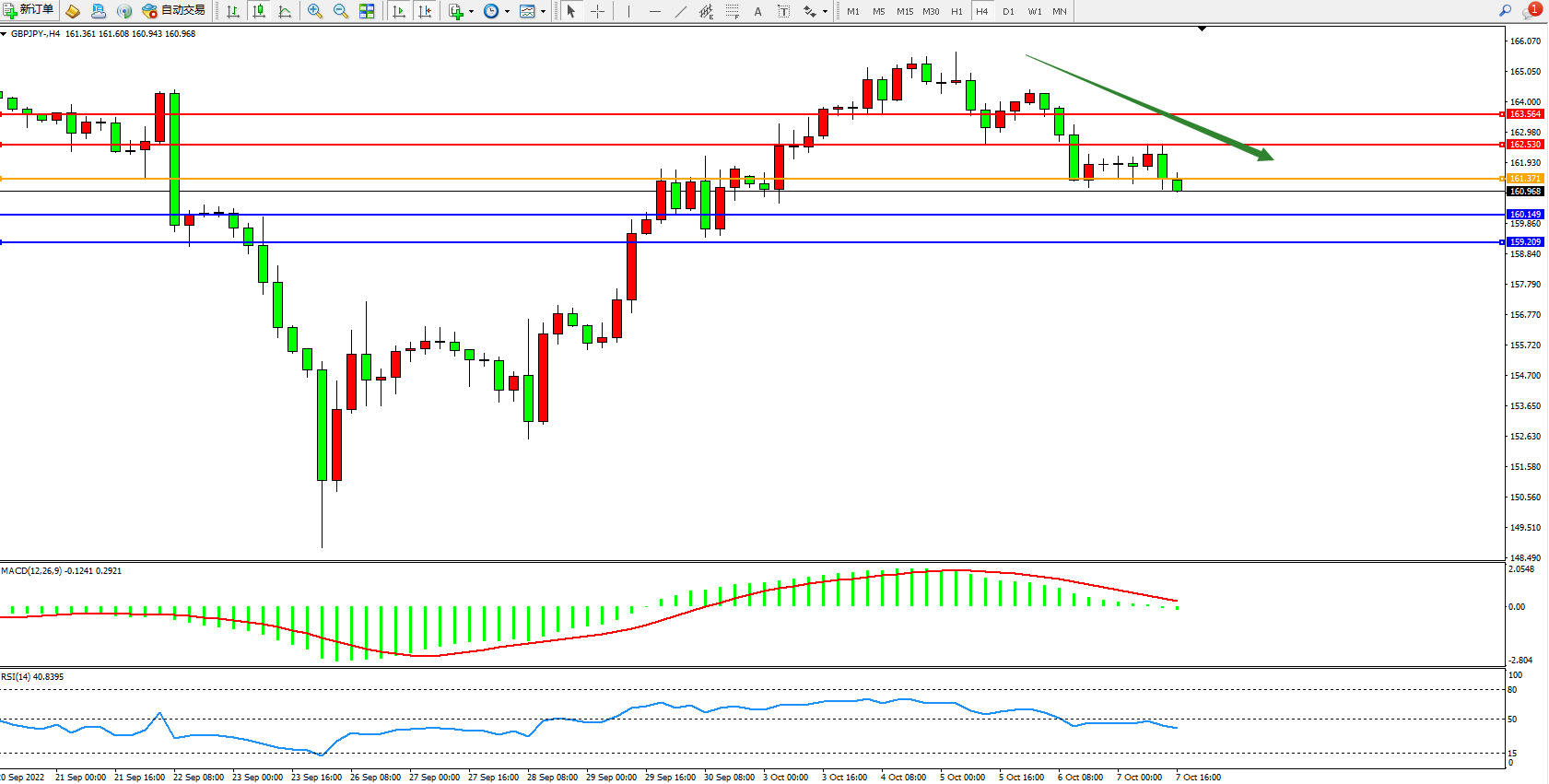 英镑兑日圆维持160.968附近震荡,由于英国央行被迫介入稳定债券市场的重大失调,预计在持续的财政和政治压力下,货币将继续成为广泛的压力释放阀。