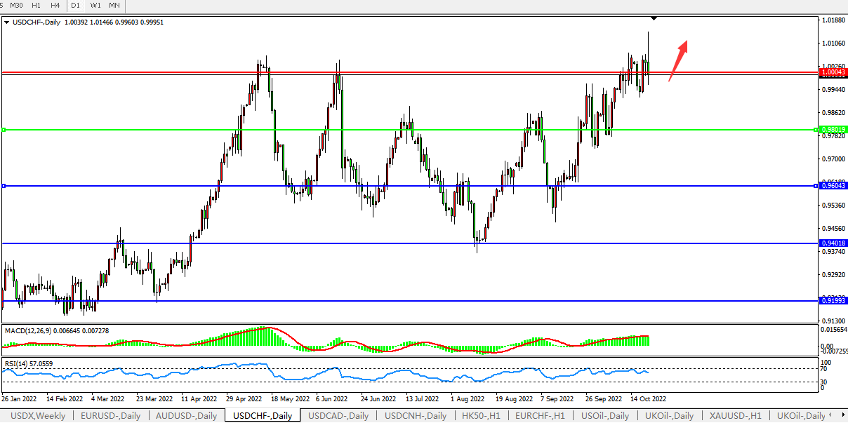 美元兑瑞郎USDCHF 日线图