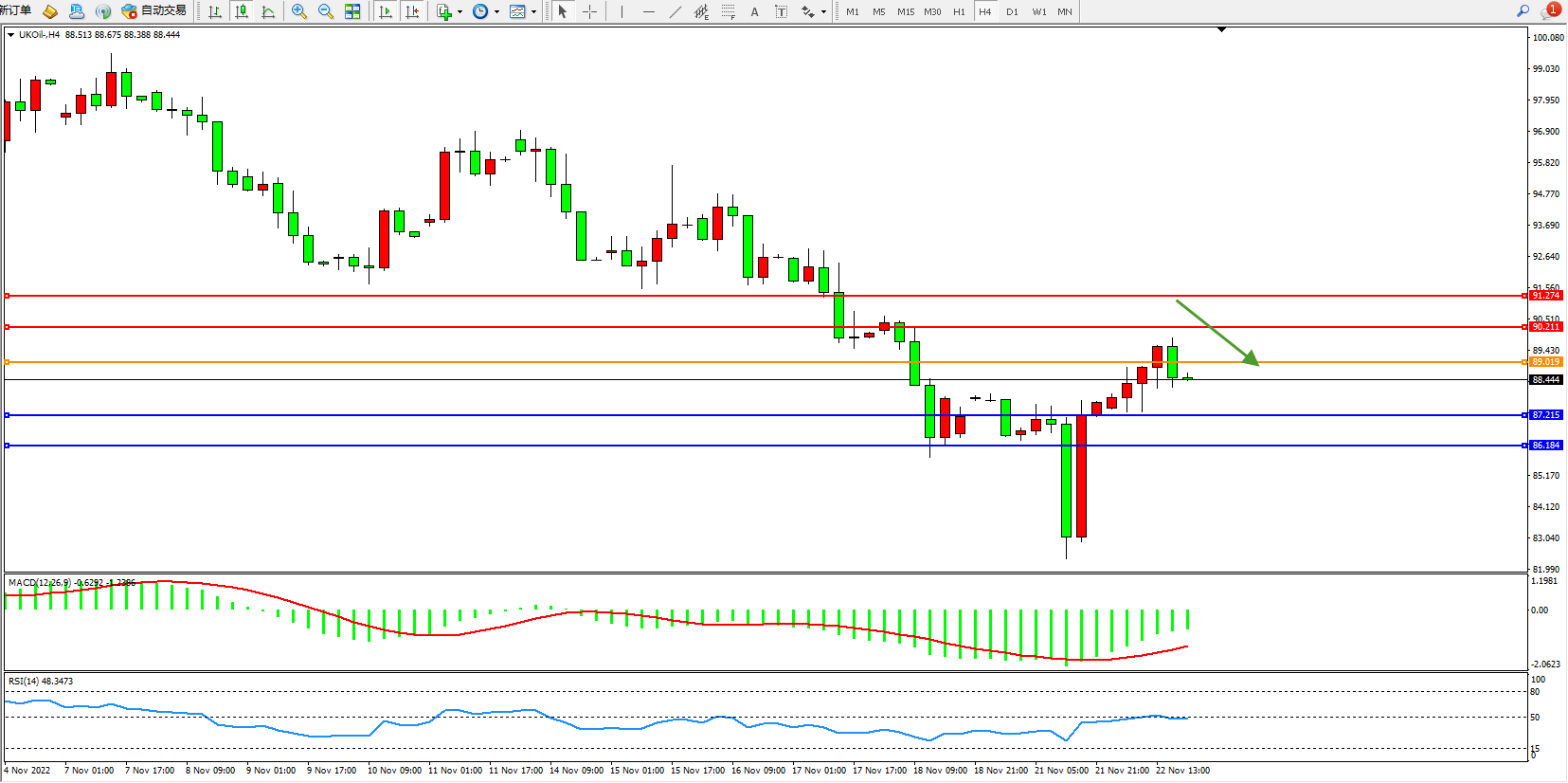 布油UKOil——4小时K线图显示: