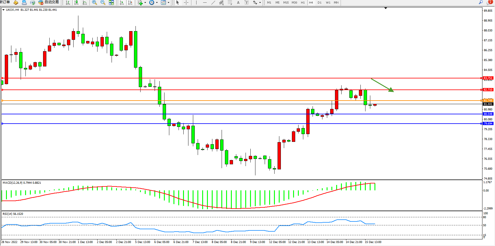 交易策略:81.749下方看跌,目标80.548、79.694