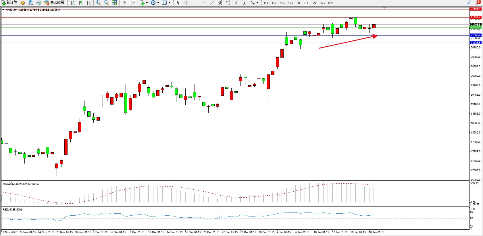 香港恒生指数1月18日(周三)收盘上涨100.36点,涨幅0.47%,报21678.0点;港股三大指数全天维持震荡行情,恒指涨0.47%,国指涨0.36%,恒生科技指数涨0.54%,三大指数均在阶段高位徘徊。大型科技股涨跌参半,百度跌2.6%,京东跌超1%,因获游戏版号,网易涨6.5%表现较佳,腾讯涨1.66%;南下资金净流入30.65亿港元,大市成交额为1278亿港元。据香港特区政府新闻公报,香港特区政府今日(18日)公布,经与内地相关单位沟通后,明日(19日)起,从香港入境内地的三岁及以下幼童将不必出示出行前48小时内进行的新冠核酸检测阴性结果。