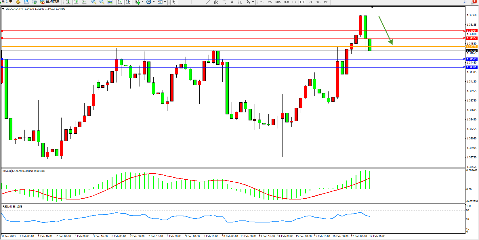 美元加元USDCAD——4小时K线图显示: