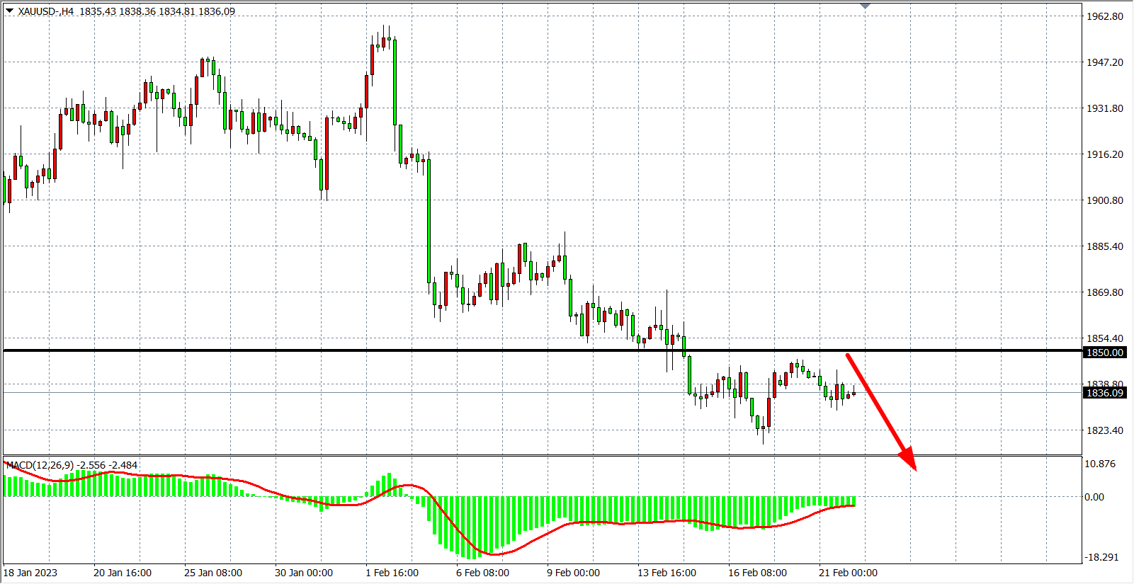 交易策略:在1850.00 之下看跌,目标1820.00         1800.00
