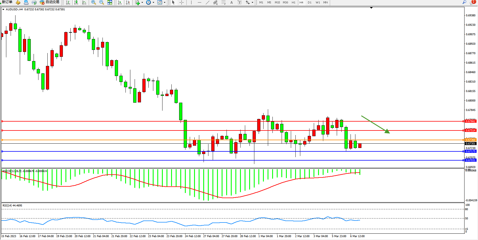 支撑位:0.67175 0.67031
