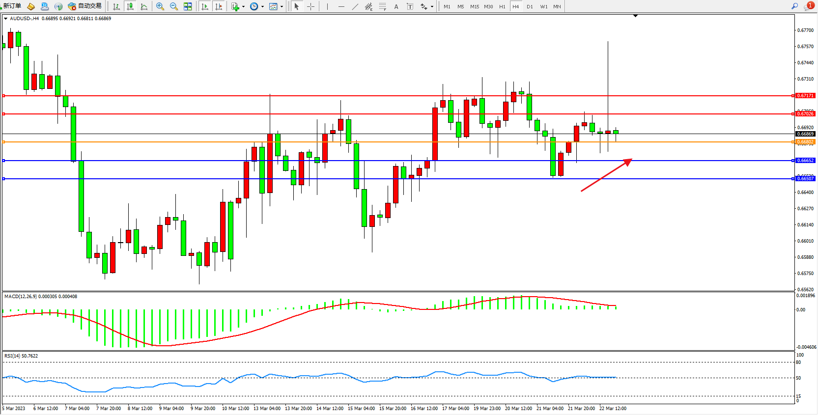 交易策略:0.66802上方看涨,目标0.67026 0.67171