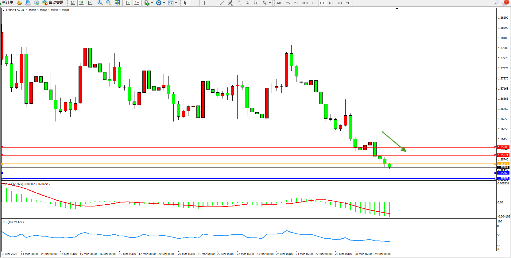 美元加元USDCAD——4小时K线图显示: