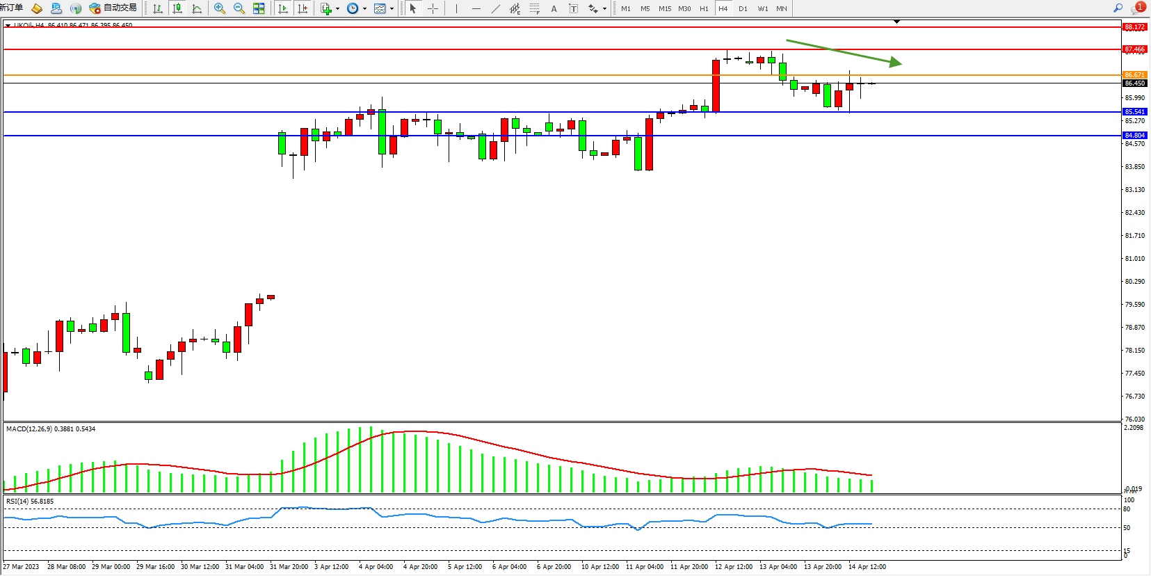 布油UKOil——4小时K线图显示: