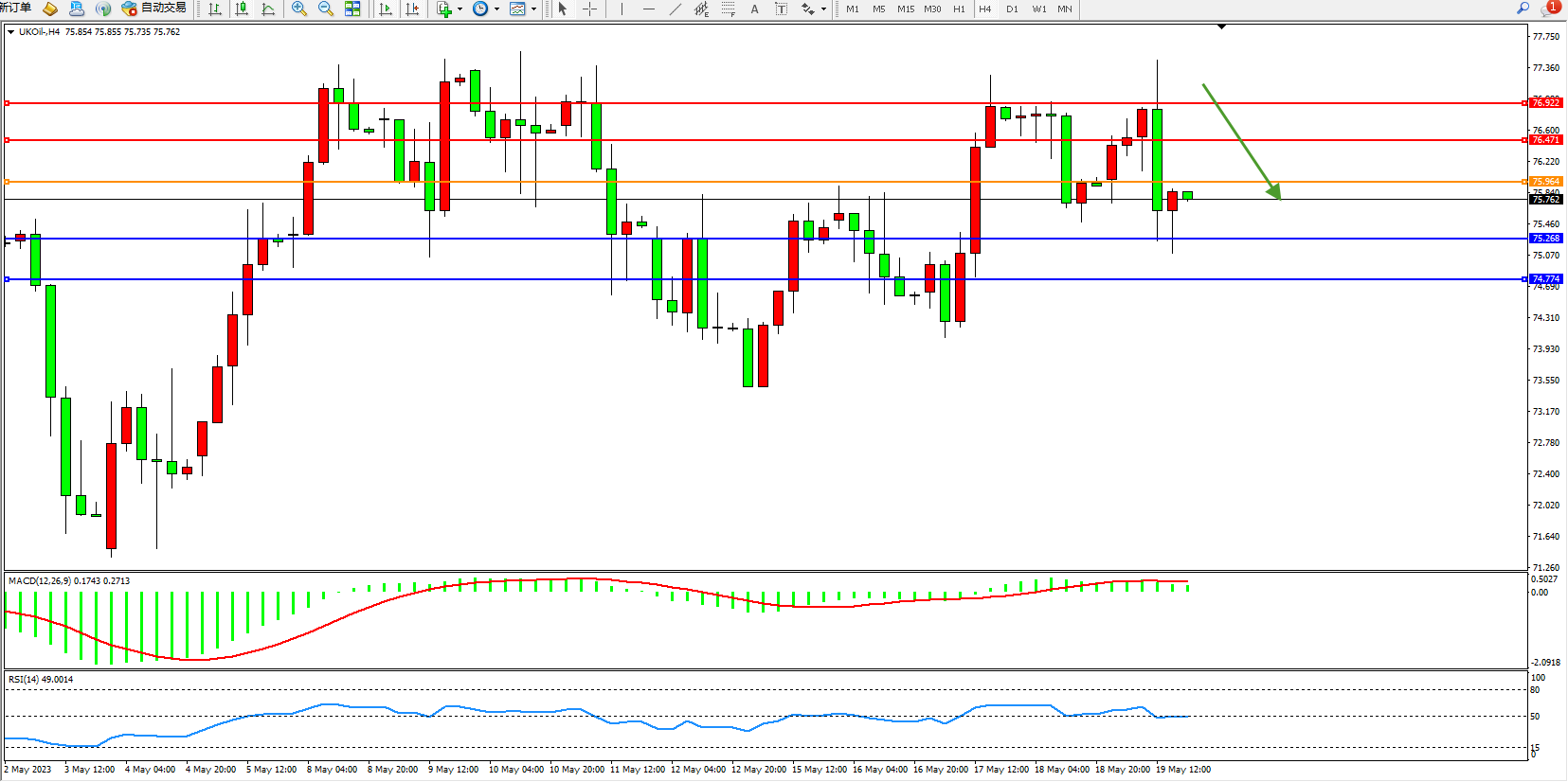 支撑位:75.268  74.774