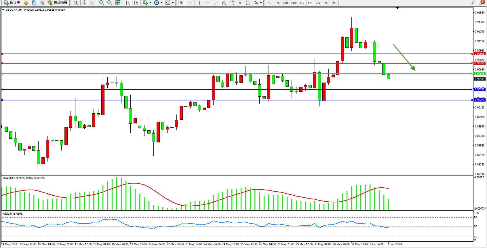 交易策略:0.90616下方看跌,目标0.90383  0.90227