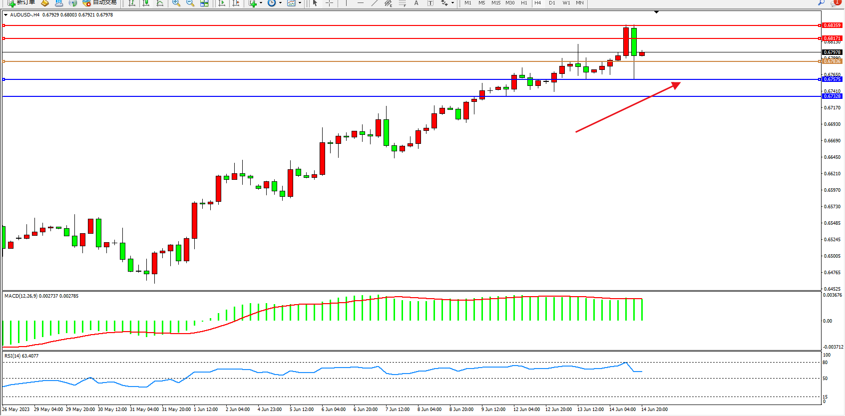 交易策略:0.67836上方看涨,目标0.68171  0.68359
