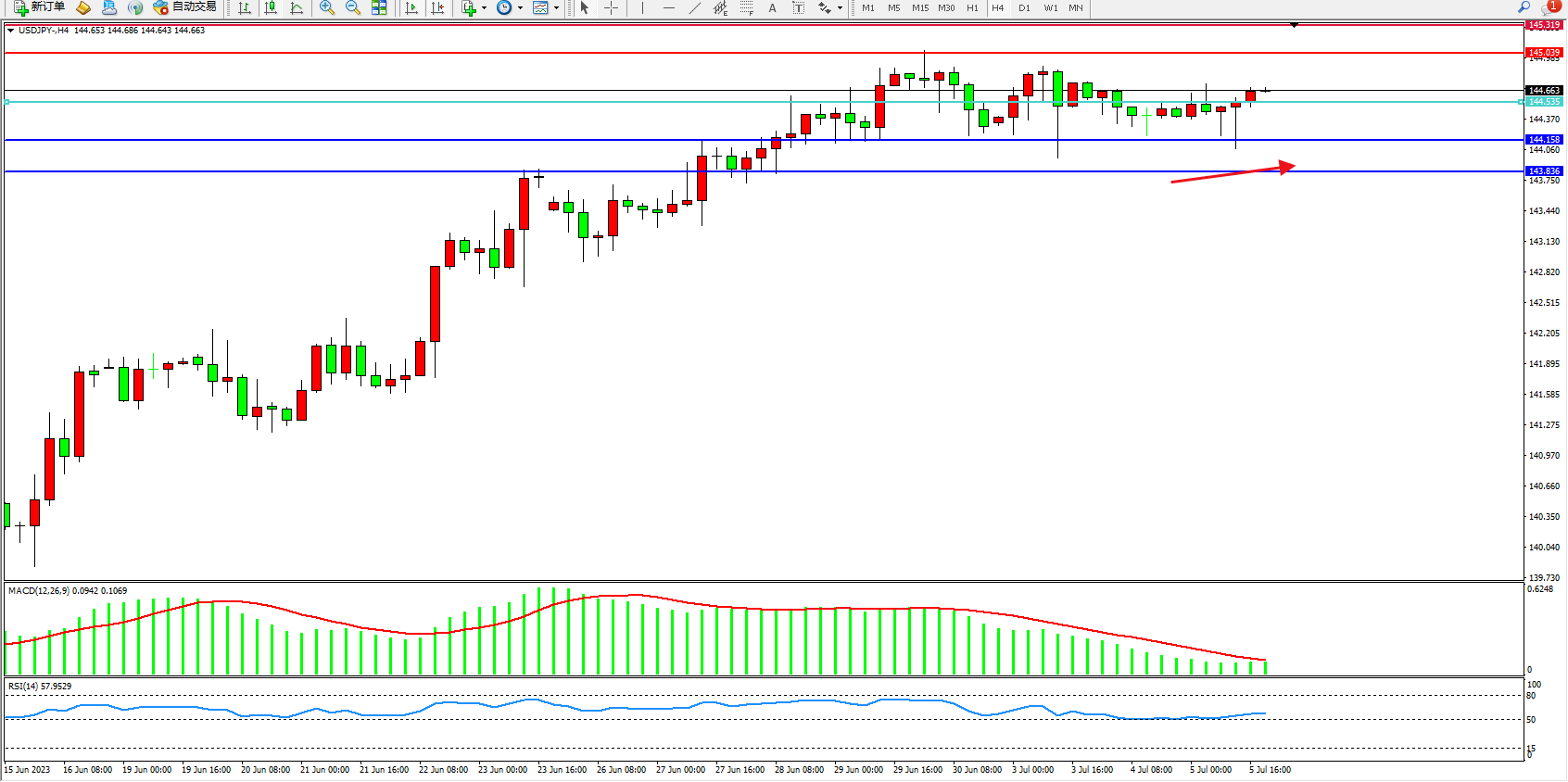 备选策略:144.535下方看跌,目标144.158  143.836