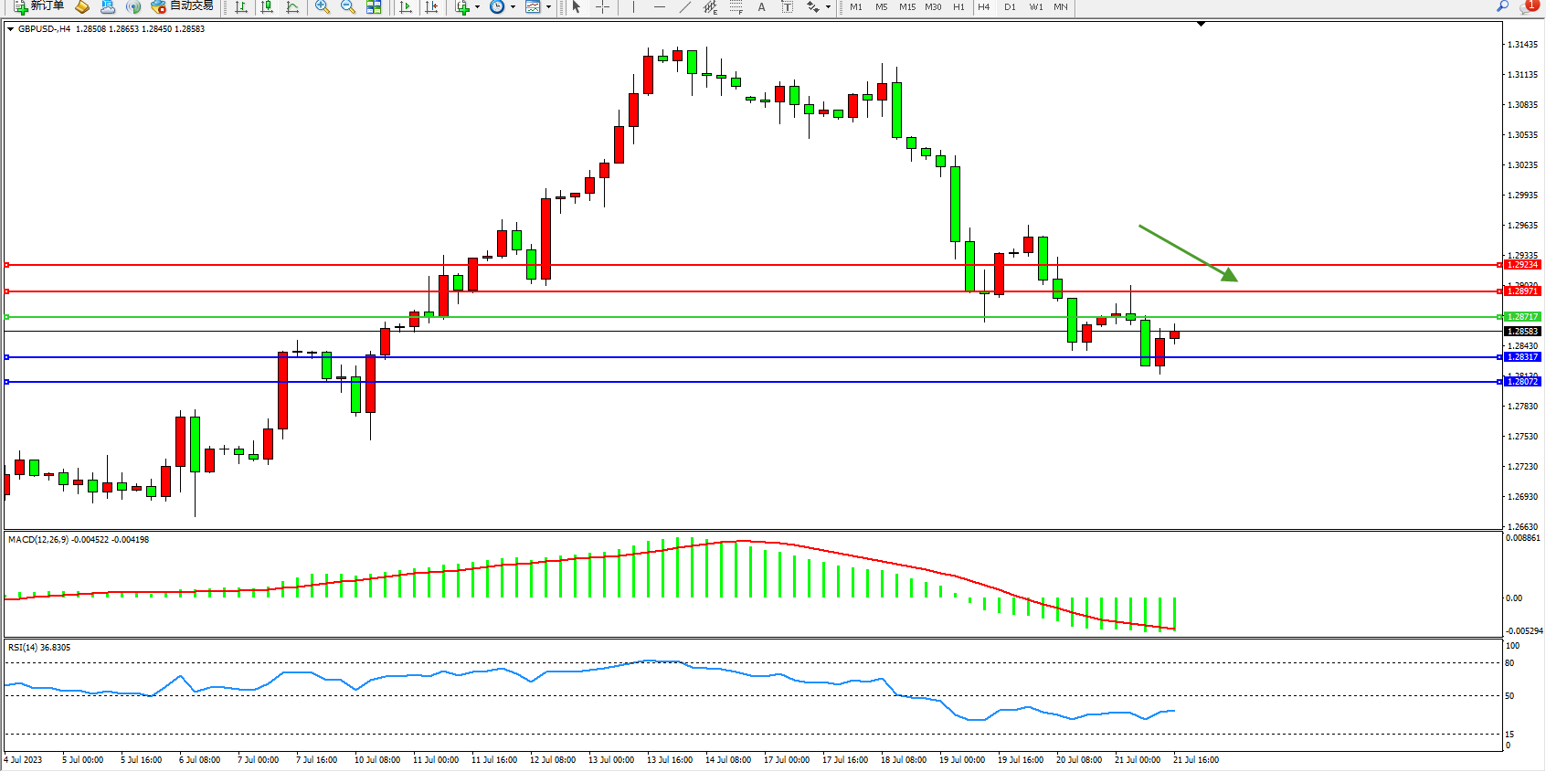 英镑美元GBPUSD ——4小时K线图显示: