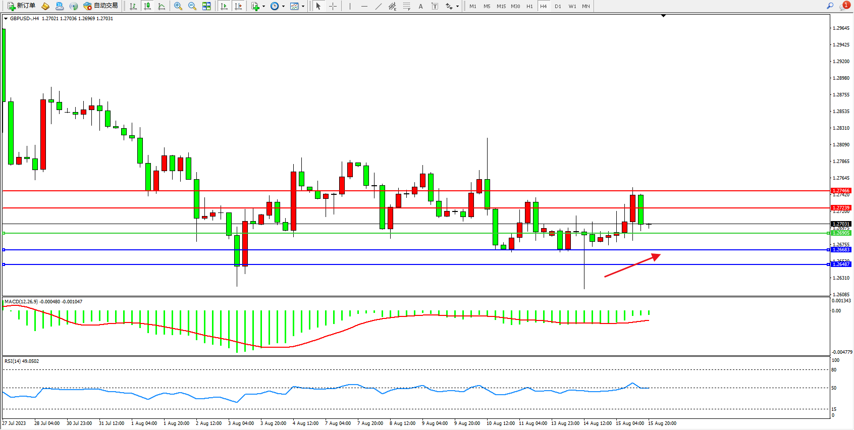 交易策略:1.26905上方看涨,目标1.27239 1.27466