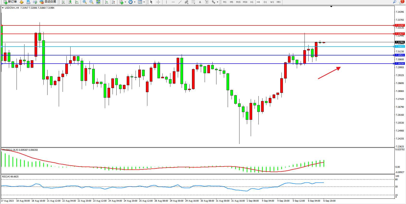 备选策略:7.31611下方看跌,目标7.30921  7.30250
