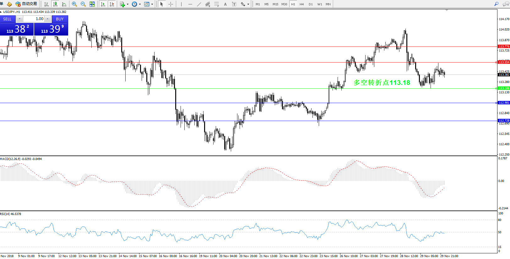 备选策略:维持113.18上方,看涨行情。