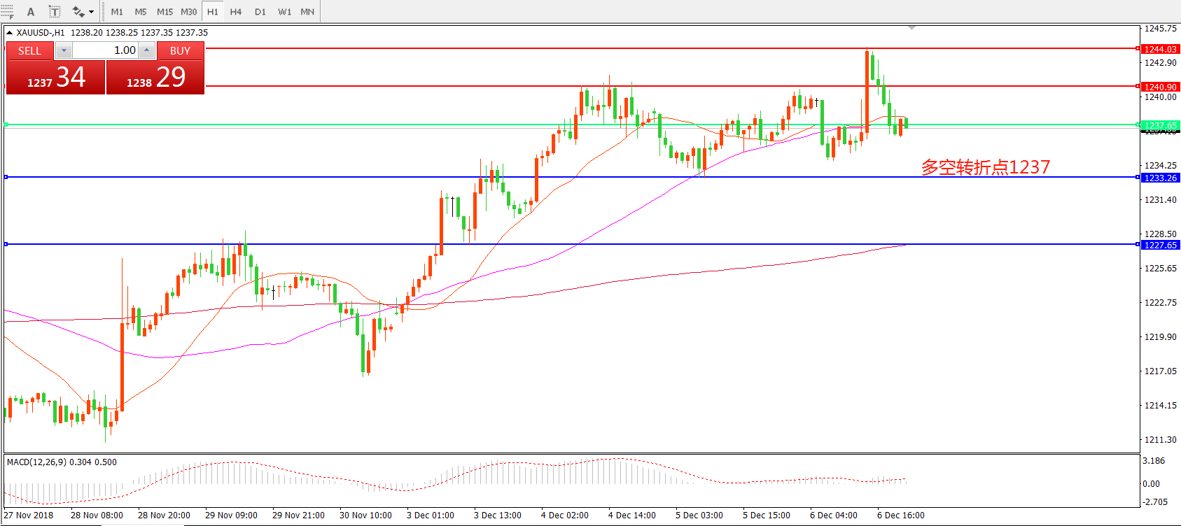 多空转折点:1237.00