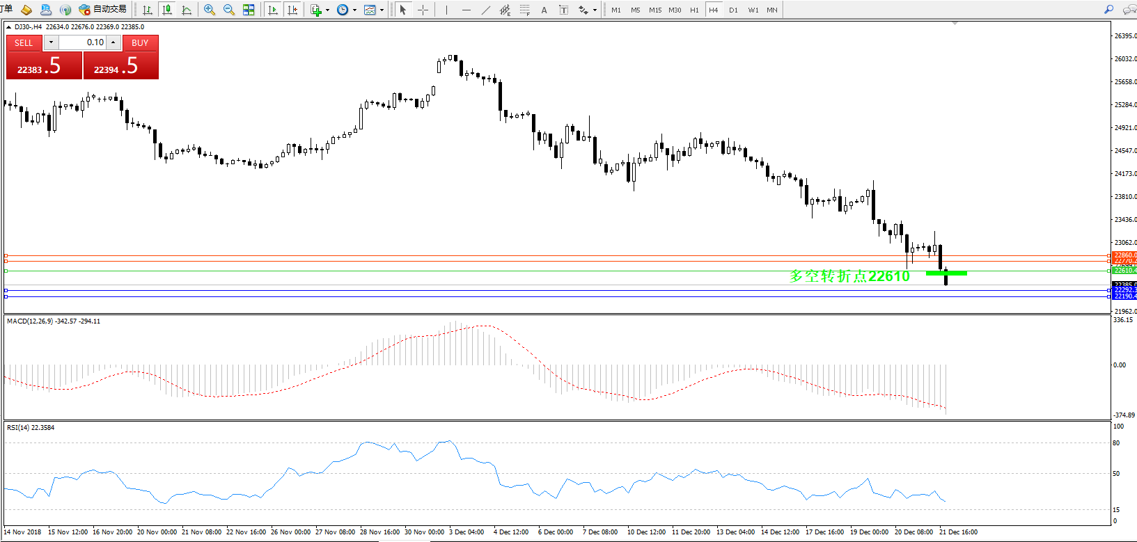 交易策略:22610下方看跌,目标22292、22190