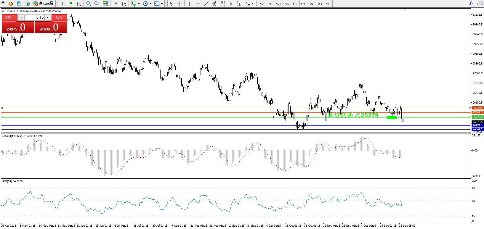 恒指HK50 ——4小时K线图显示: