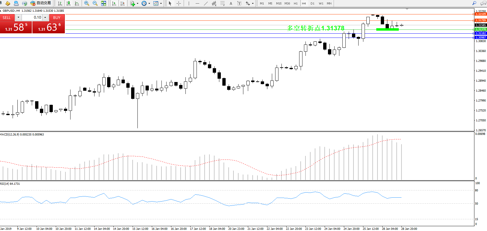 交易策略:1.31378上方看涨,目标1.31799、1.32109