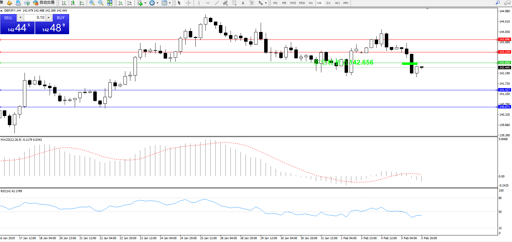 交易策略:142.656下方看跌,目标141.427140.671