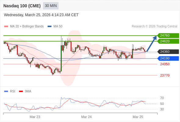在 24190 之上,看涨,目标价位为 24620 ,然后为 24760 。