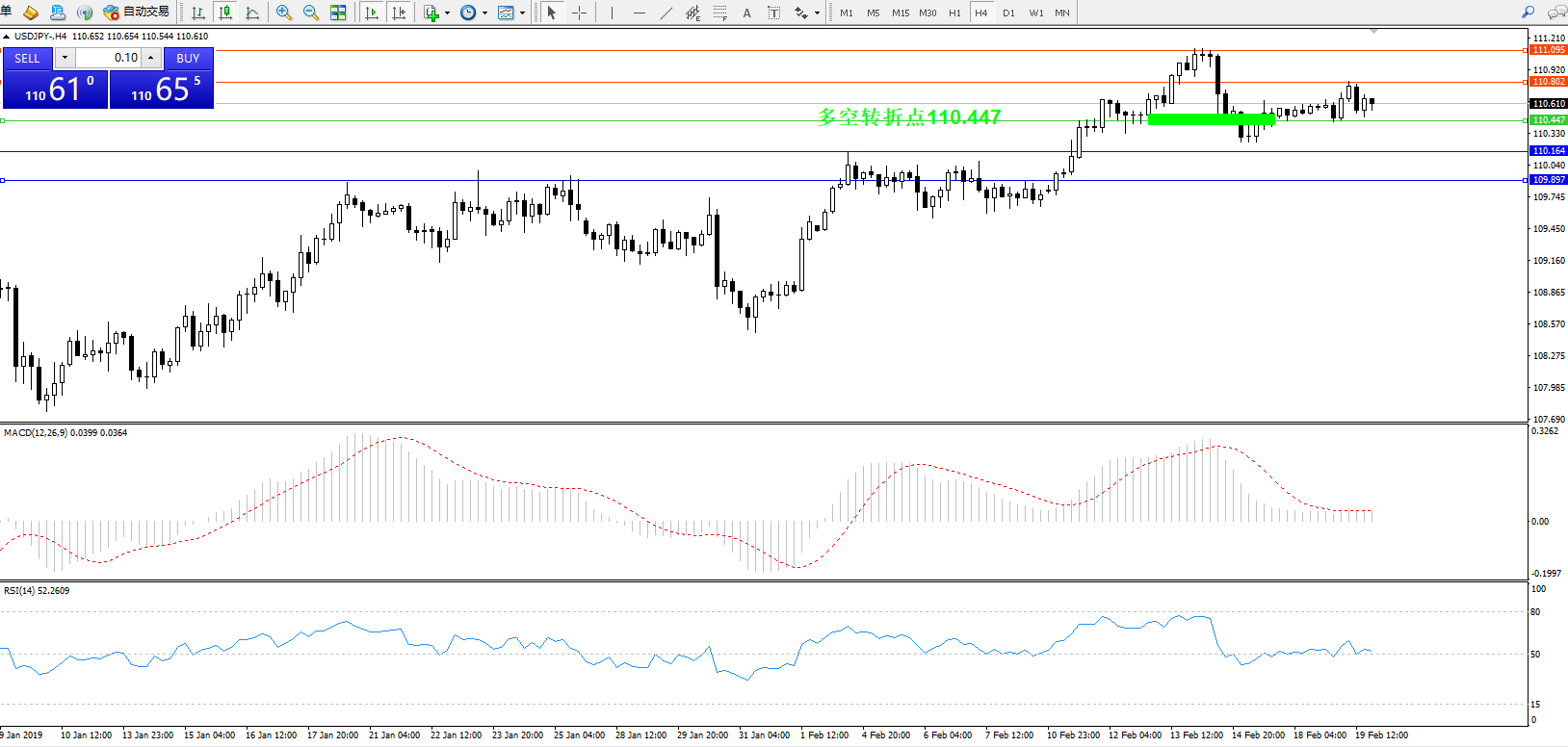 交易策略:110.447上方看涨,目标110.802、110.095
