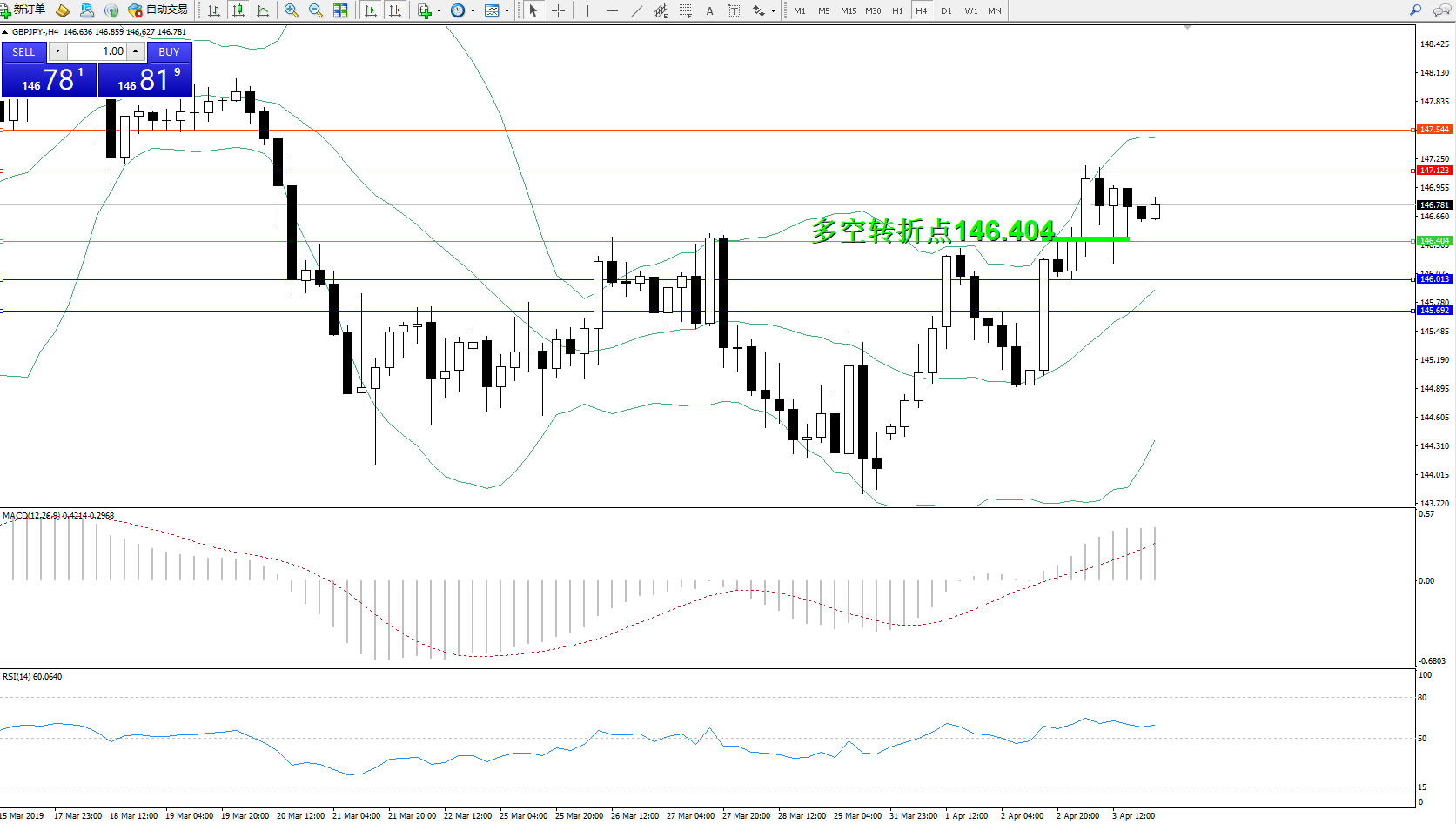 交易策略:146.404上方看涨,目标147.123147.544