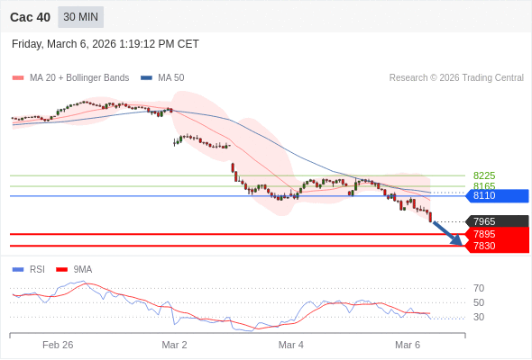 Cac 40 当日内: 存在压力。