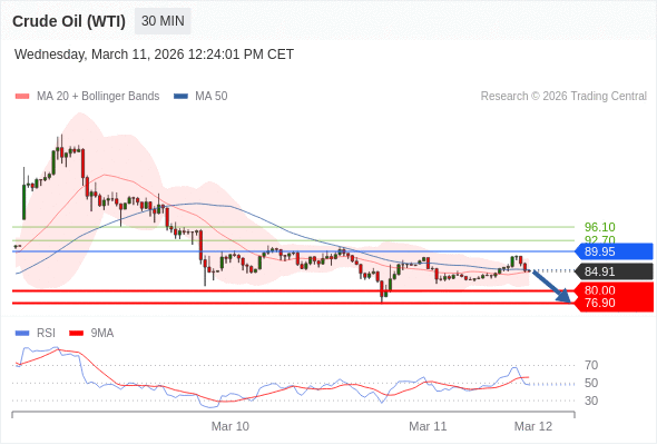 交易策略: 在 88.50 之下,看跌,目标价位为 80.00 ,然后为 76.90 。