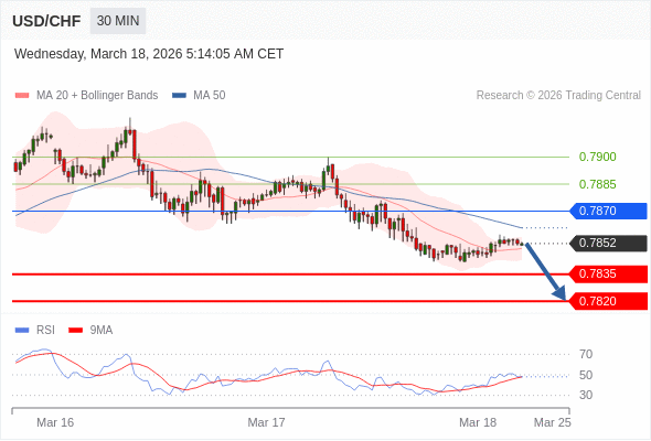 在 0.7870 之下,看跌,目标价位为 0.7835 ,然后为 0.7820 。