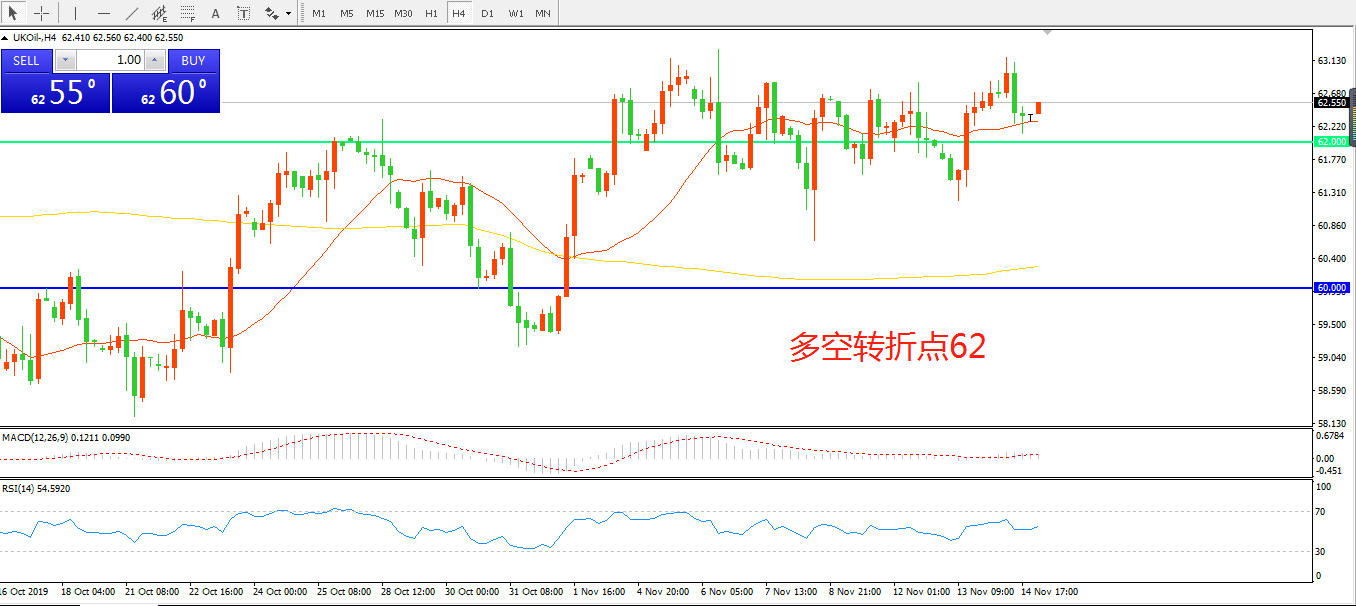 交易策略:在62.00之上看涨,目标64.50     66.00