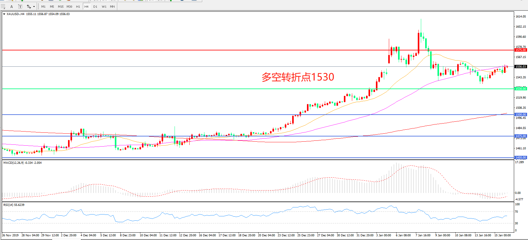 多空转折点:1530.00