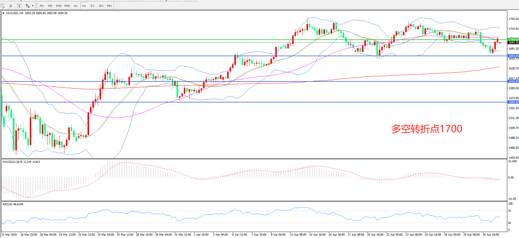 多空转折点:1700.00