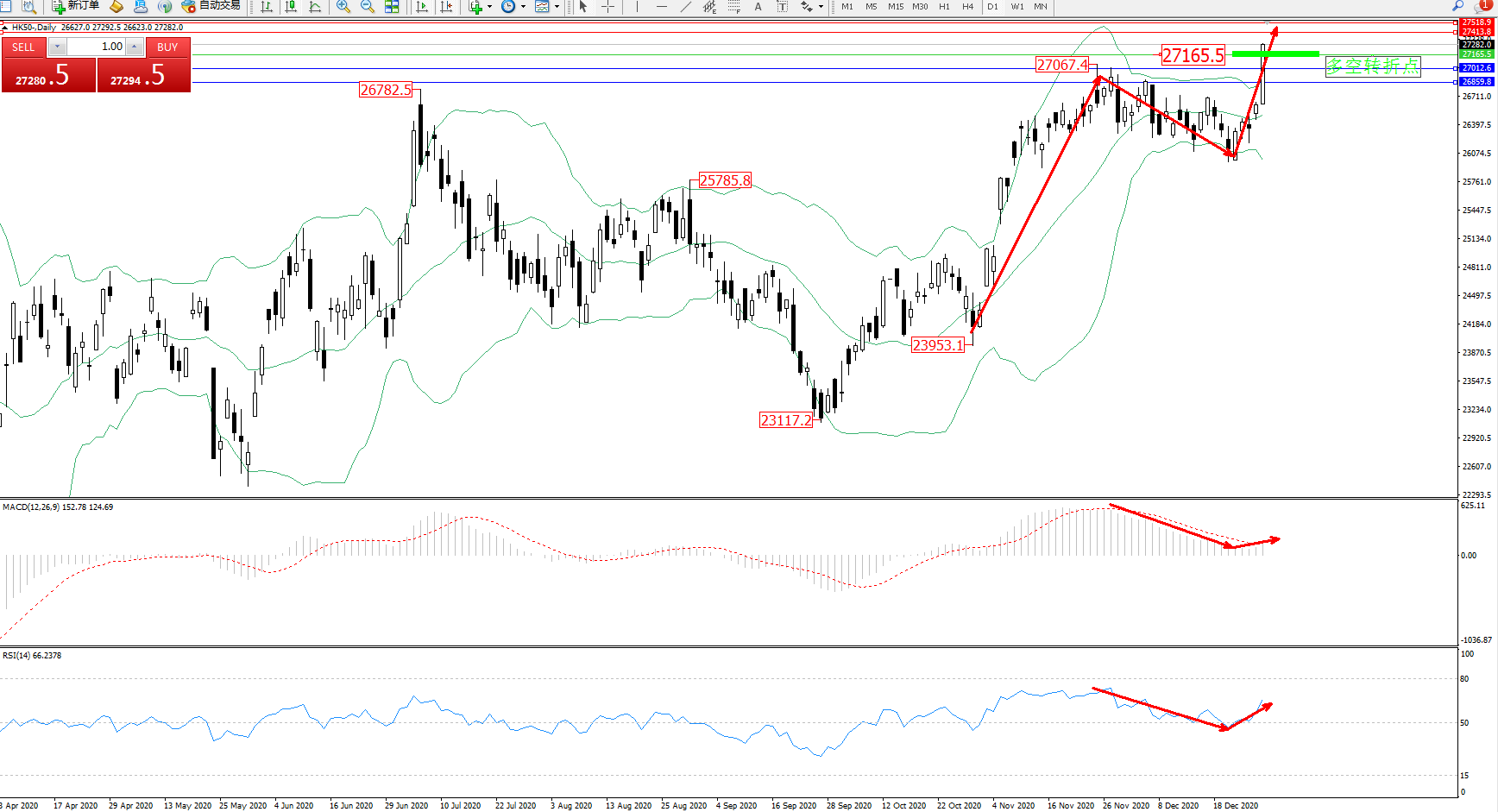 香港恒生指数12月30日(周三)收盘上涨578.62点,涨幅2.18%,报27147.11点;创10个月新高;港股今日高开高走,尾盘主要指数涨幅扩大,市场情绪达到高潮,热点板块同步拉升。科技股集体上扬,致恒生科技指数大涨3.72%报8295点。盘面上,大型科技股暴动,阿里涨6.4%,腾讯、美团皆升超5%,三者贡献恒指近300点;半导体板块午后涨幅扩大,中芯国际一度飙涨16%,今日南下资金净流入69.01亿港元,大市成交额为1533.21亿港元。2020年在新冠疫情冲击、全球风险偏好回落等因素影响下,港股市场尽管也不乏以恒生科技指数为代表的结构性亮点,然而整体表现仍处于全球主要市场靠后水平。但是2021年,随着全球经济共振复苏、风险偏好提升、南下和海外资金共同流入等多重因素推动下,港股市场将迎来一轮“明明白白”的牛市。