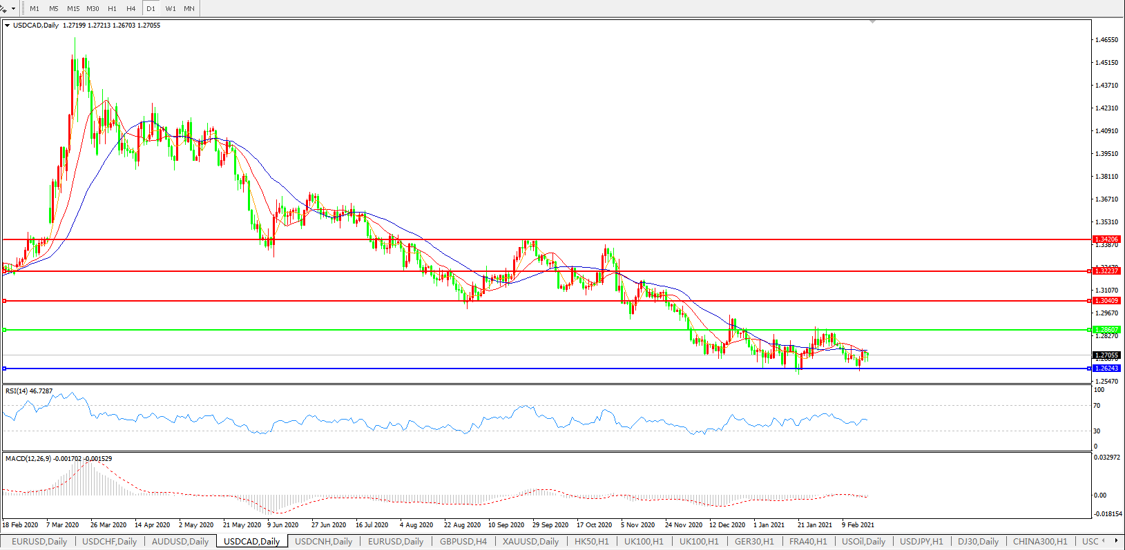 美元兑加元USDCAD 日线图: