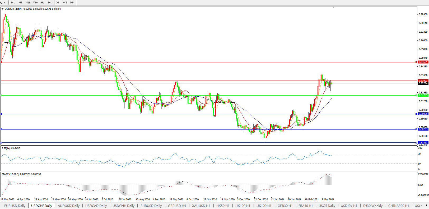 美元兑瑞郎USDCHF 日线图:
