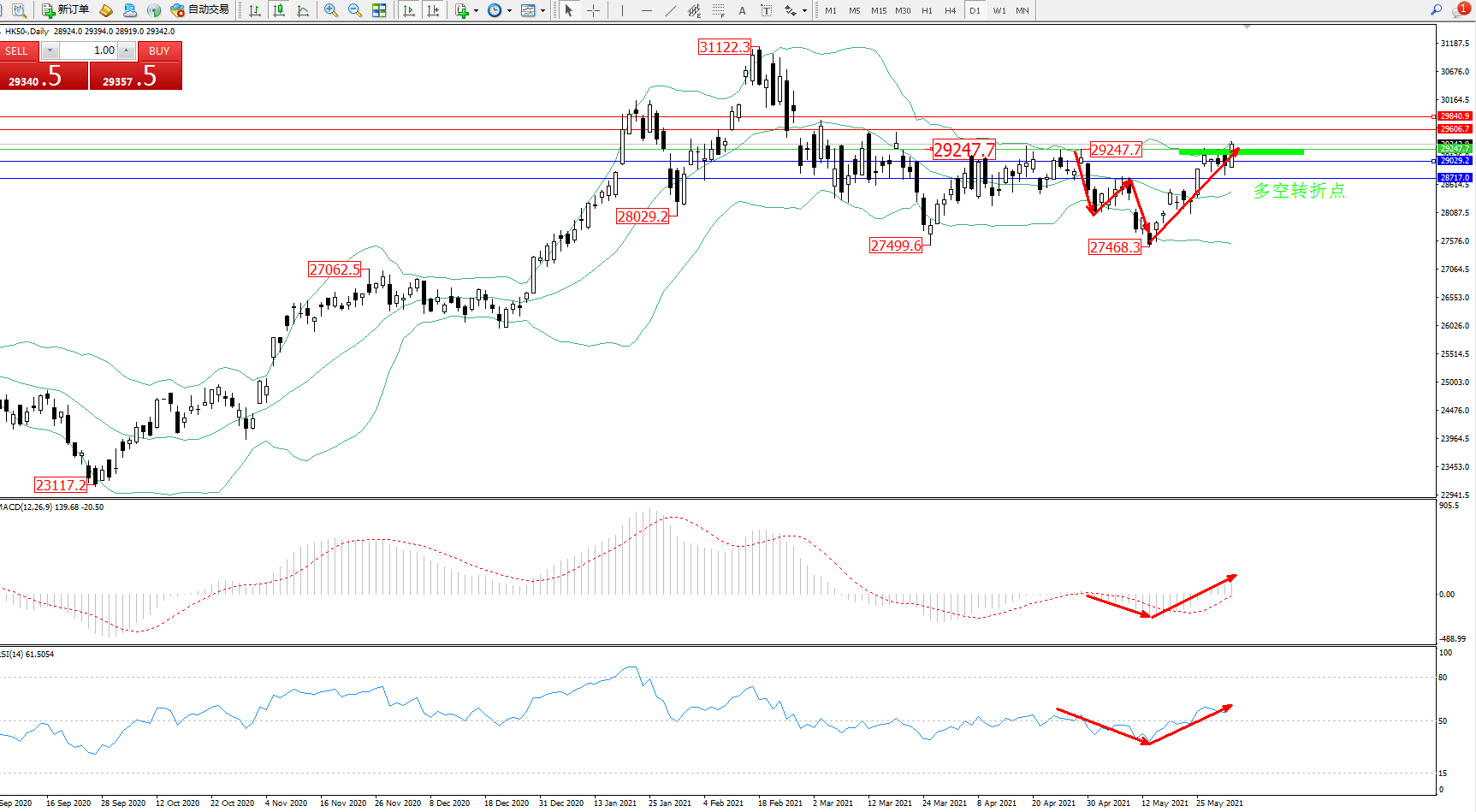 恒指HK50 ——日K线图显示: