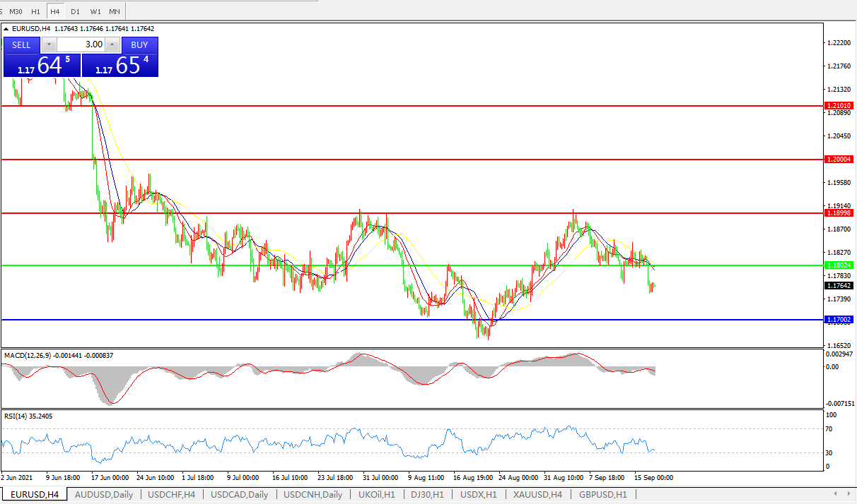 交易策略:1.1800下方看跌,目标1.17001.1600