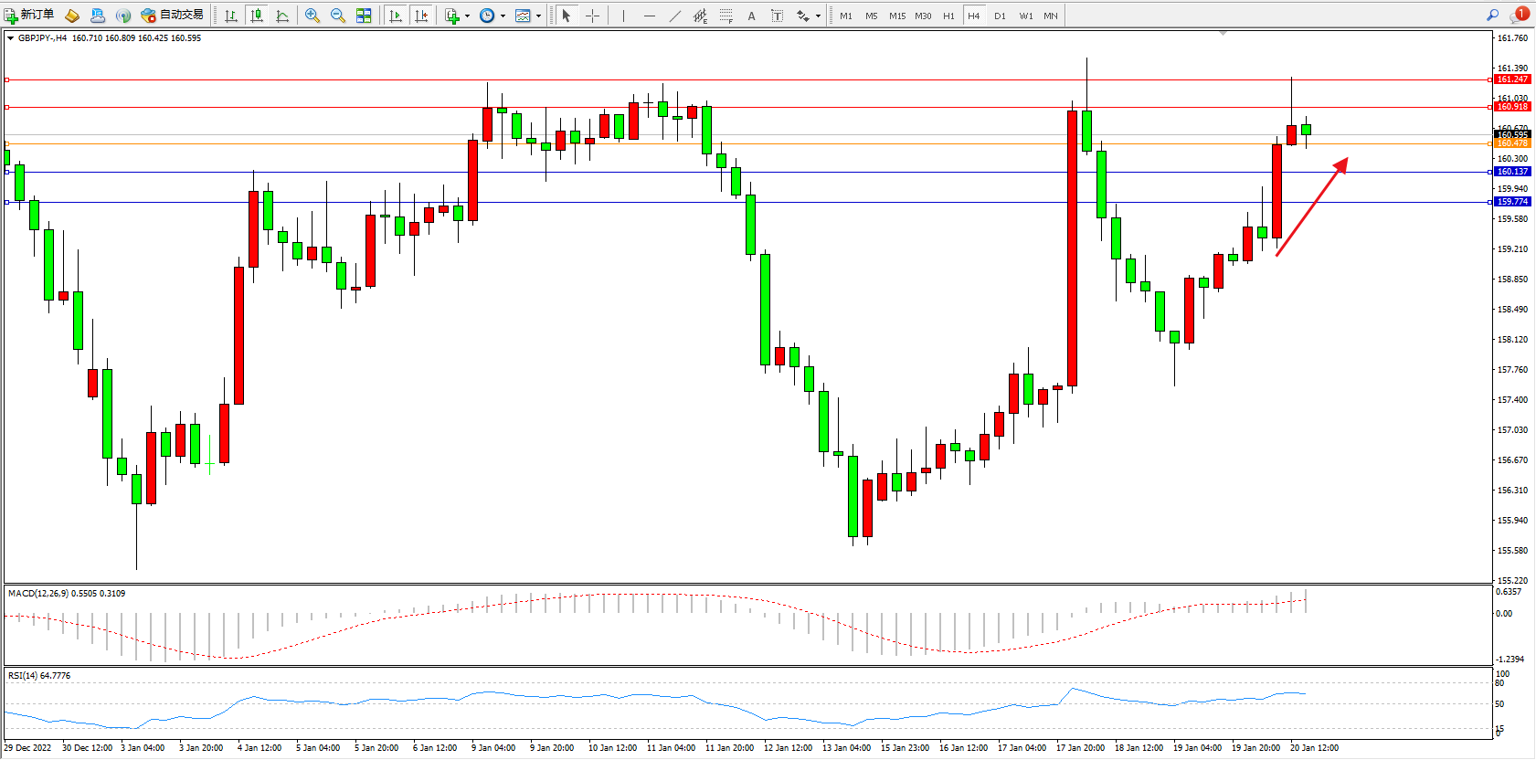 交易策略:160.478上方看涨,目标160.918、161.247