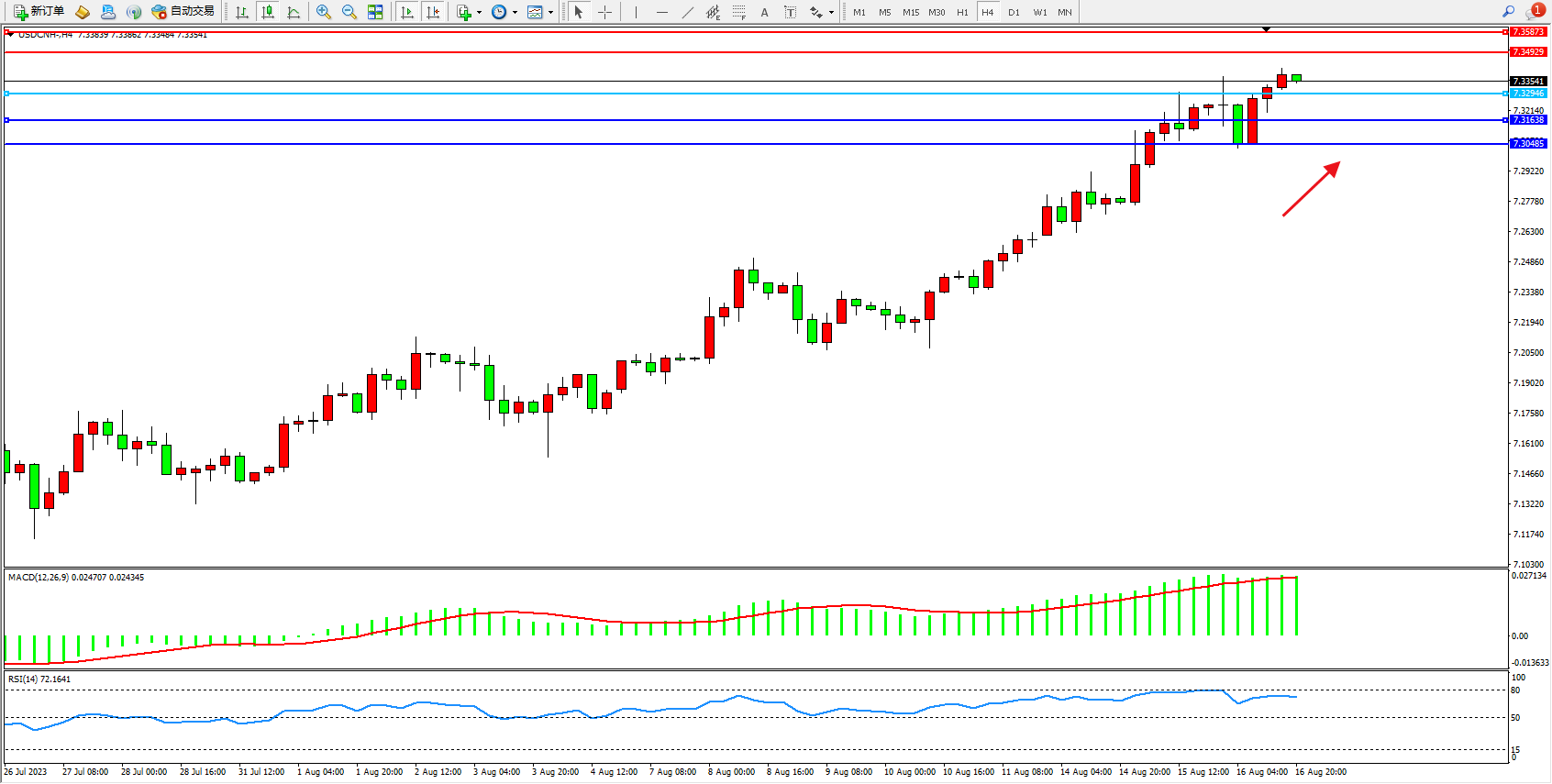 交易策略:7.32946上方看涨,目标7.34929 7.35873